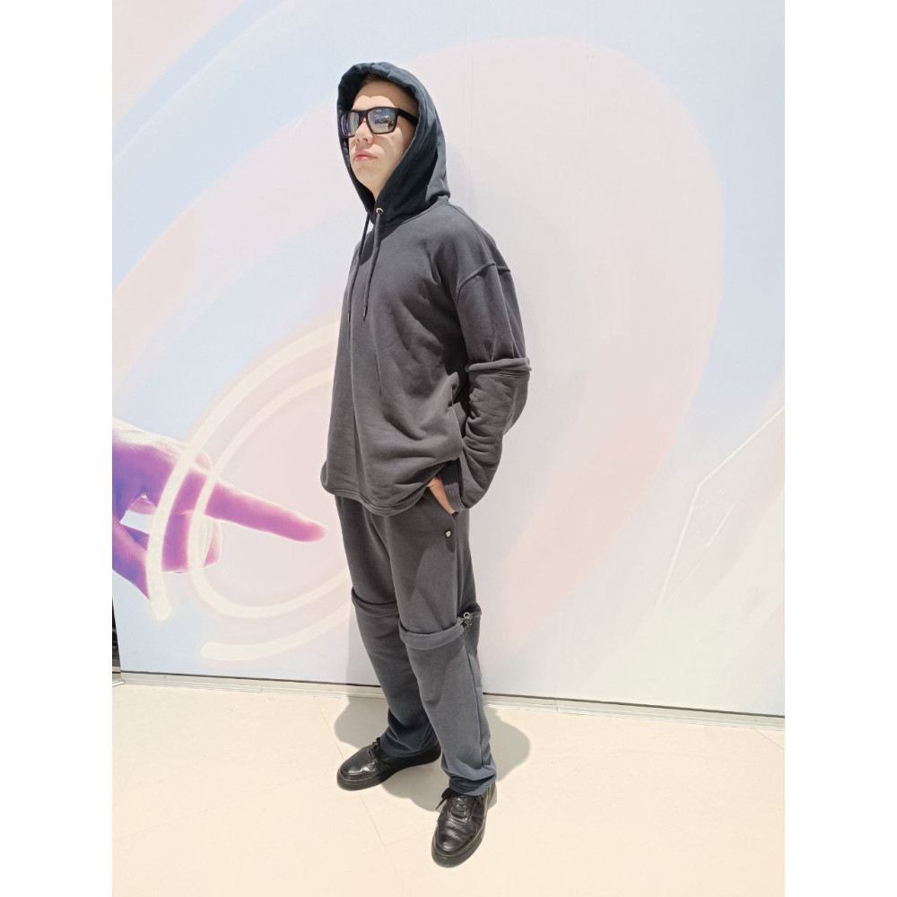 Сучасний комфорт у кожній деталі. Костюм виконаний із м’якого, практичного матеріалу, який забезпечує свободу рухів та зносостійкість. Оверсайз худі з глибоким капюшоном створює захист від вітру та додає стилю. Штани мають універсальний крій із додатковими елементами трансформації — секції на блискавках дозволяють регулювати довжину та вентиляцію залежно від ситуації.